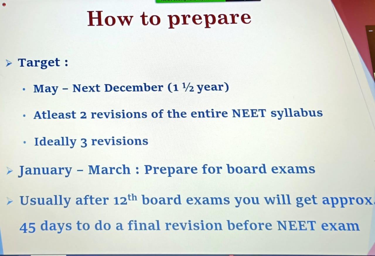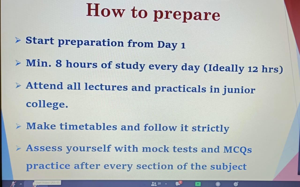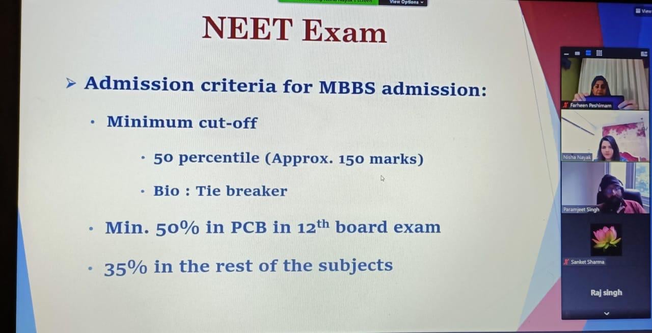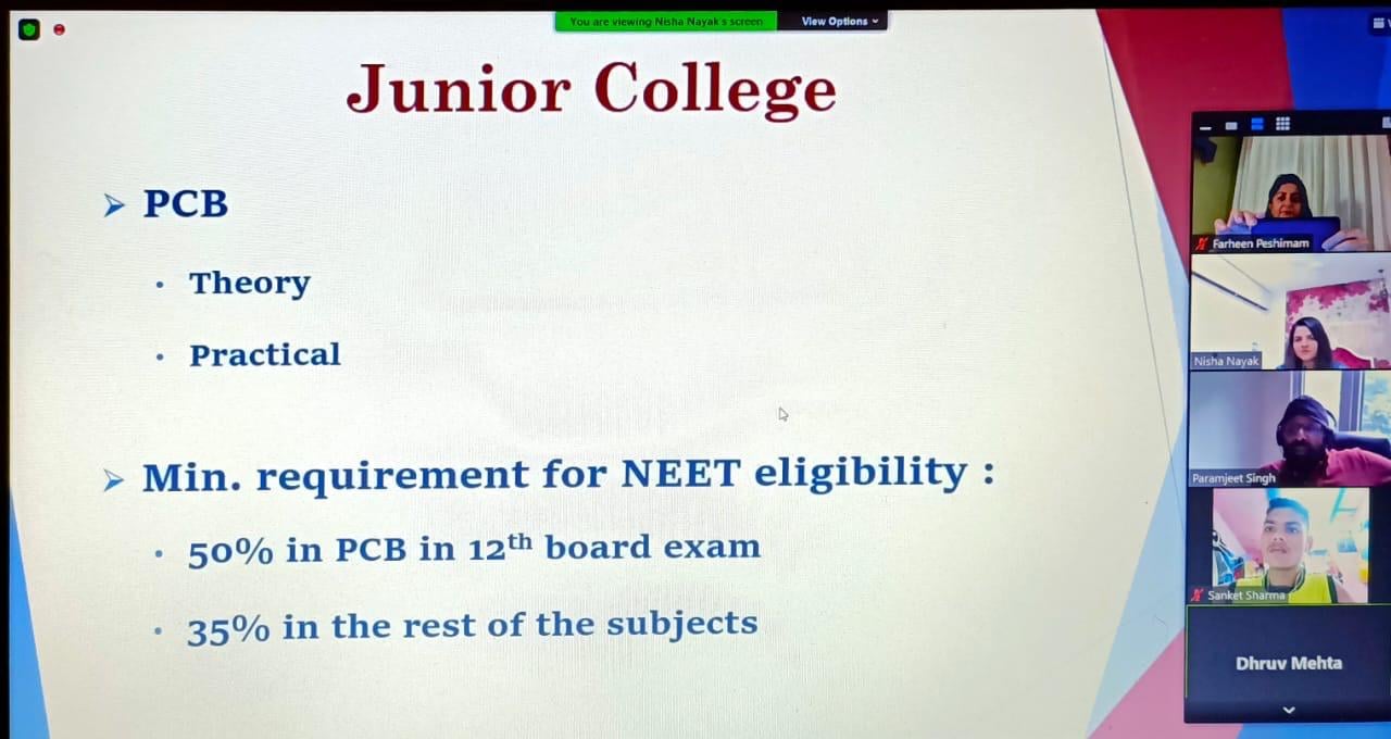 Dr. Nayak ran the interested students through the entire process of preparing for the medical exam right from preparing from class 11 onwards, preparing for the NEET exams and choosing the colleges. Then she spoke about Alternative Courses such as Dental, Physiotherapy, Ayush Courses and Para Medical Courses. She explained about all these courses in detail and the future of all the courses.